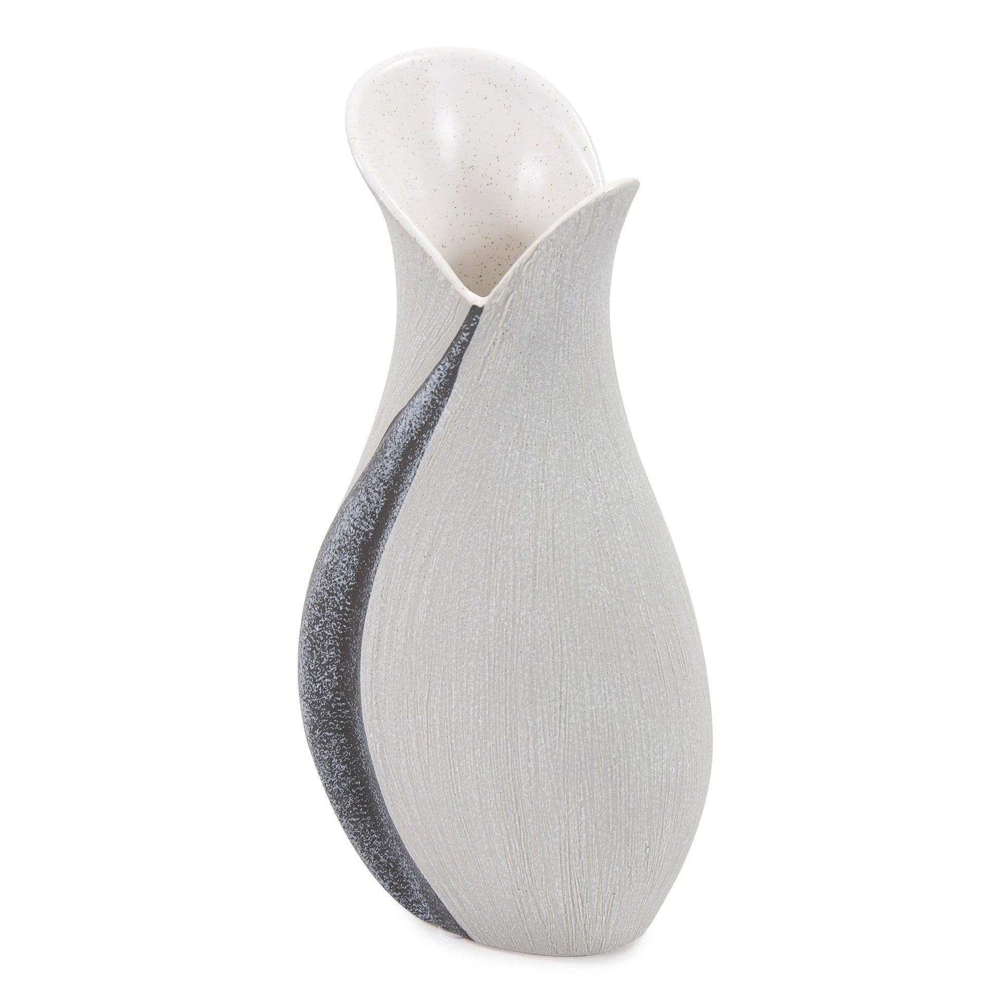 10" Gray and Off White Tulip Ceramic Table Vase With Sequins